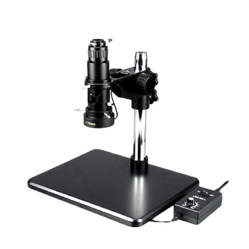 Este es un microscopio de inspección monocular con objetivo de zoom de 0.7X-5.0X y lente C-mount de 0.4X