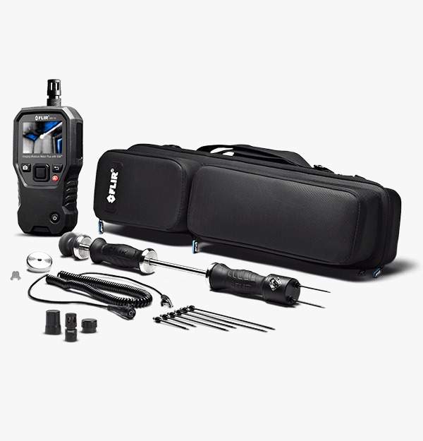 El FLIR MR176-KIT5 es un kit profesional de medición de humedad con imágenes térmicas, diseñado para detectar y localizar problemas de humedad de forma rápida y confiable. Integra un medidor de humedad con tecnología de medición guiada por infrarrojos (IGM) y una cámara térmica FLIR Lepton que te muestra visualmente dónde está el problema, lo que facilita inspecciones en paredes, techos, suelos y otras superficies.